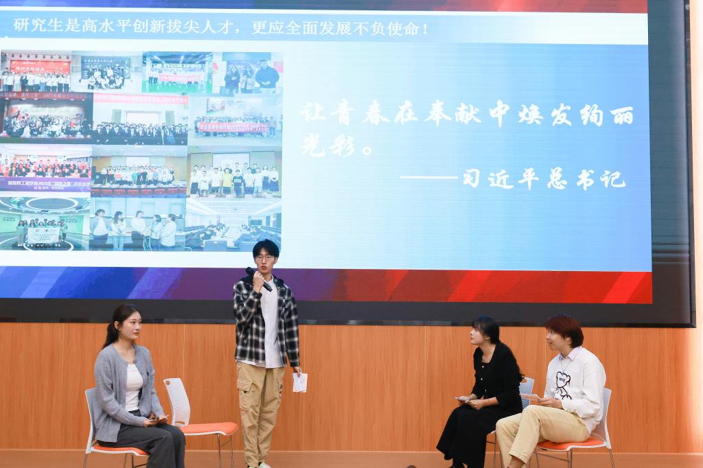 随后,进入展示环节。本活动首次分为团队赛道与班集体赛道,经过申报材料初审,共有6个班级、10支团队入围。其中既有默默奉献、助力学院发展的学生组织,也有埋头苦干、致力于科技创新的重点实验室团队;既有携手奋进、共同上岸的保研团队,也有紧密团结、不断突破的班集体。各参赛队伍通过创意视频、诙谐相声、辩论比赛、情景再现等多样化的形式展现了集体在学风建设、科创竞赛、社会实践等方面的成就,成员之间的默契配合和精彩纷呈的展示,给现场观众带来了一场视听盛宴。