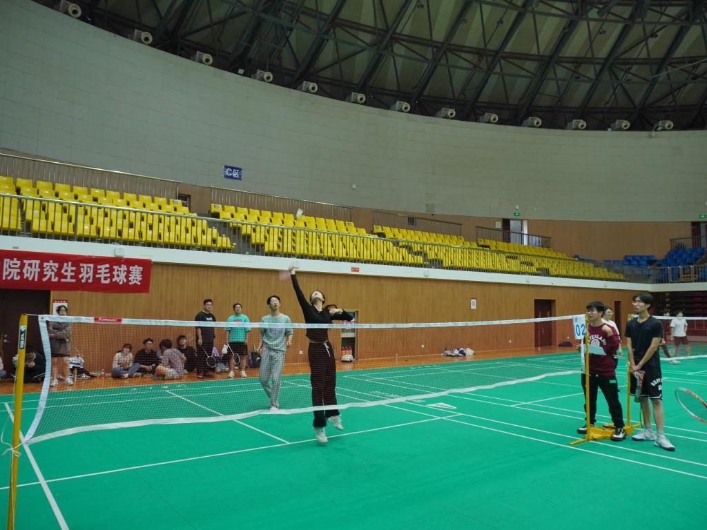 随后,比赛拉开帷幕。本次比赛以淘汰赛形式展开,共分为男女单打、男女双打、学生混双、师生混双等项目。赛场上,师生们携手并肩,挥汗如雨,导师们以沉着稳健的球技展现出丰富的赛事经验,学生们则以敏捷的身手与蓬勃的朝气为比赛注入活力,亲密无间的合作化作精准的每一次传球与回击,这不仅是一场竞技体育的较量,更是一次充满温情与激励的精神交流。经过激烈角逐,最终共7位参赛选手分别在各项目中拔得头筹,后续选手们将代表学院进一步参与学校“江花节”研究生羽毛球赛的角逐。