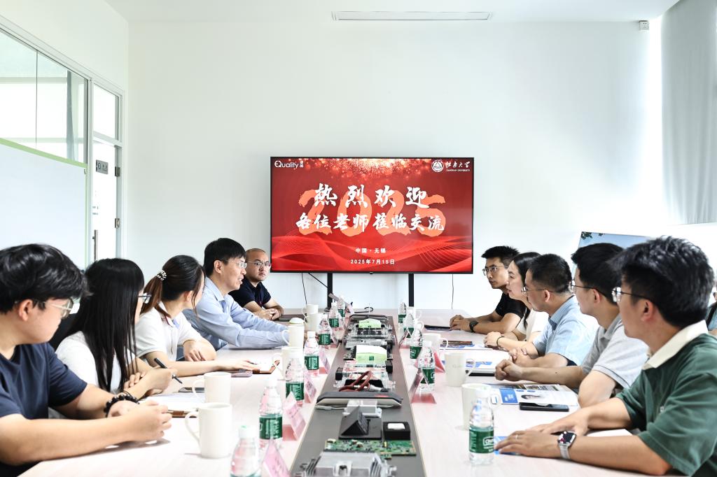 为深入贯彻落实教育部“访企拓岗促就业”专项行动工作部署,进一步拓展就业岗位资源、深化校企合作机制,近日,物联网工程学院“名企有约・智联未来”实践团赴无锡新区开展“访企拓岗促就业”专项调研实践活动。实践团深入朗新科技集团股份有限公司、无锡小天鹅电器有限公司、卓品智能科技无锡股份有限公司、无锡先导智能装备股份有限公司、无锡奥特维科技股份有限公司及无锡威孚高科技集团股份有限公司等多家行业标杆企业,通过参观研学、座谈交流、校友分享等形式,开启了一场贯通理论实践、链接课堂与产业的深度认知之旅。物联网工程学院党委副书记、副院长吴妍,副院长陶洪峰,江南大学无锡高新区工业智能产业创新研究院常务负责人贾捷,学院辅导员曾磊、刘子健、周显宜参加实践调研活动。