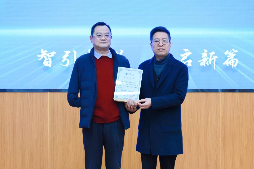 会上,周云龙向捐赠单位颁发捐赠证书,栾小丽为新增董事单位授牌,倪松涛为物联网工程学院与无锡市德宁节能科技有限公司合作成功申报的2024年江苏省研究生工作站进行授牌。