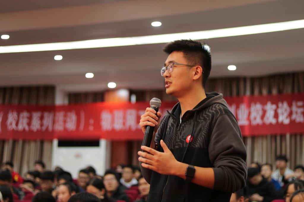 甲子峥嵘育桃李,江南筑梦庆芳华。在校庆60周年来临之际,物联网工程学院邀请优秀创业校友代表回校,与学院师生欢聚一堂,共话创业时代。本次论坛由学生工作部(处)和物联网工程学院联合主办,特邀智伴科技创始人、物联网工程学院2007届校友王不凡,极课大数据创始人、物联网工程学院2008届校友李可佳,生物易构创始人、物联网工程学院2014届校友魏佳星三位优秀创业校友出席。物联网工程学院党委书记程捷音,学生工作部(处)副部长陈琳,物联网工程学院党委副书记、副院长耿向阳,无锡市商务局外商投资企业服务中心主任徐迪等领导和嘉宾以及全校500余名学子参加了本次活动。论坛由物联网工程学院学生会副主席于子皓主持。