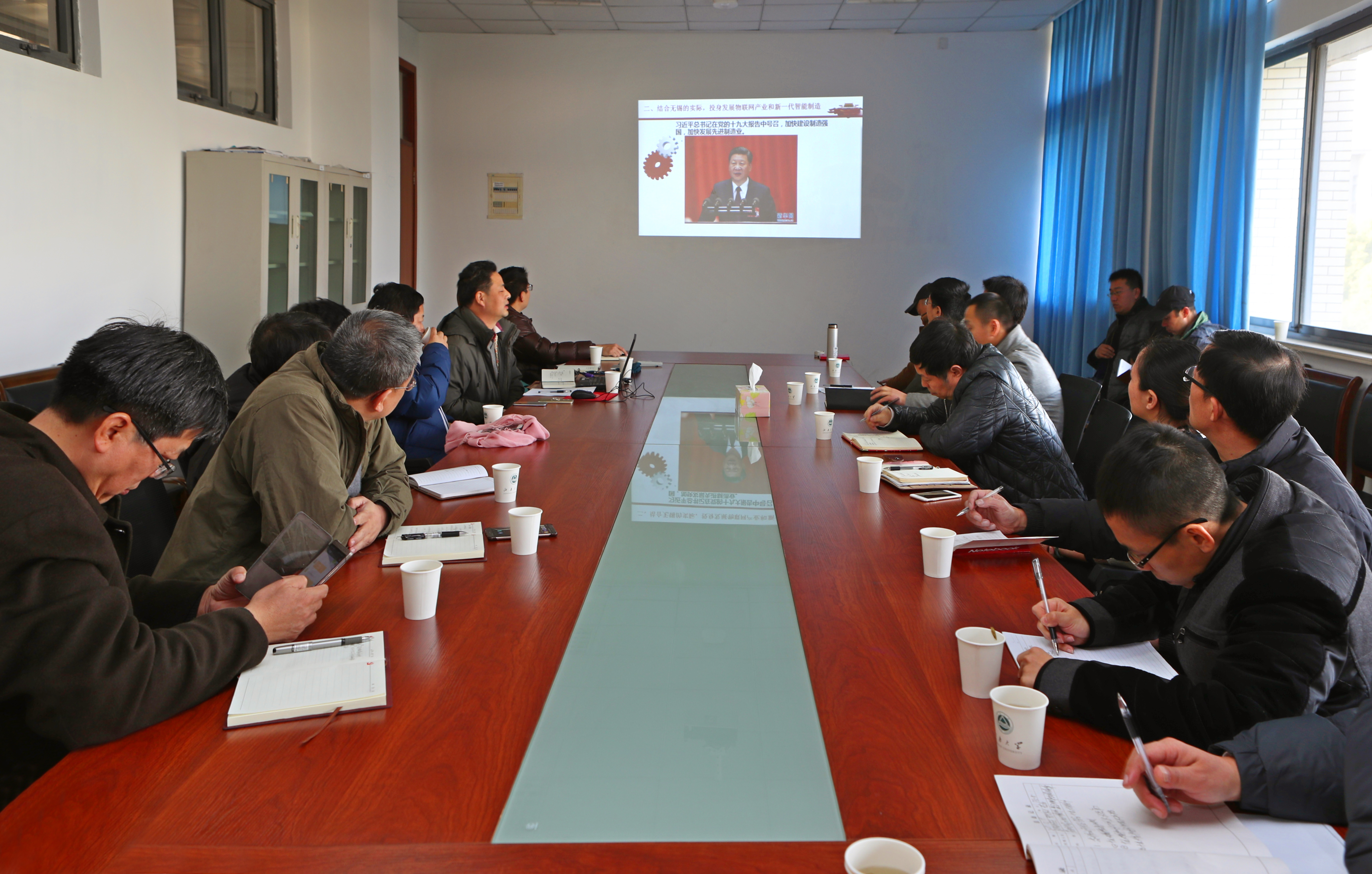 最后,陈校长对专业老师如何结合专业、结合本职工作学习贯彻党的十九大精神,提出了三点要求:一是凝聚力量、团结奋斗,解决现有瓶颈问题,将物联网工程学院早日建成国内一流的物联网学院。二是充分利用无锡市物联网产业集中、人才集聚的优势,抓住机遇,与企业紧密合作,为地方经济发展和产业升级做出贡献。三是要加大人才培养力度,苦练内功,加大对本校和外校优秀学子的吸引力。