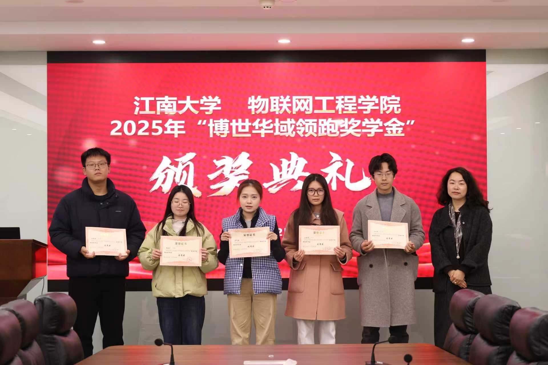 2025年12月9日下午,物联网工程学院首届“博世华域领跑奖学金”颁奖典礼在B222会议室举行。物联网工程学院党委书记张华、党委副书记兼副院长吴妍、分团委书记兼学工办主任洪筱及全体辅导员,与30名获奖研究生共同见证这一校企协同育人新实践的启动。典礼由洪筱主持。