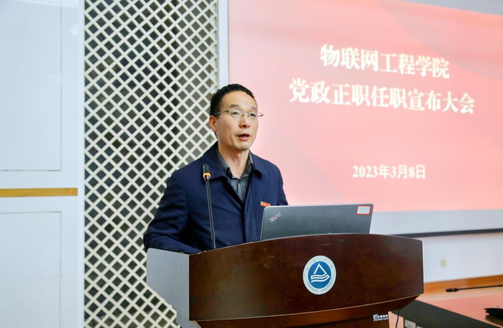 3月8日,物联网工程学院召开党政正职任职宣布大会,校党委常委、副校长堵国成出席会议并发表讲话。会议由物联网工程学院党委副书记、副院长孔丽丹主持。物联网工程学院党政领导班子及全体教职工出席会议。
