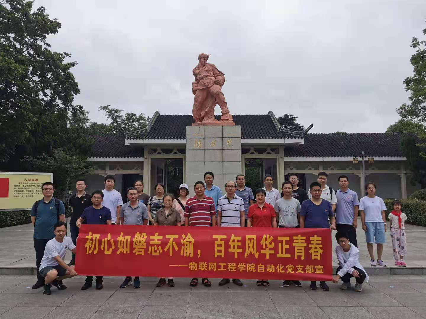 为庆祝中国共产党成立100周年,进一步扎实推进党史学习教育走深走实,7月2日和3日,物联网工程学院自动化党支部赴泰州开展“初心如磐志不渝,百年风华正青春”党史学习教育,支部党员共赴红色之旅、缅怀革命先烈、传承红色基因、弘扬爱国情怀。