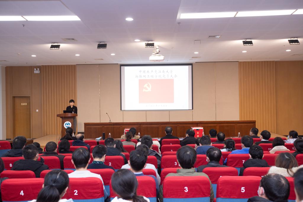 1月6日下午,中共江南大学物联网工程学院党员大会隆重召开,本次大会设图书馆三楼报告厅主会场和物联网工程学院D328分会场。会议由院党委副书记孔丽丹主持,全体师生党员参加了会议。