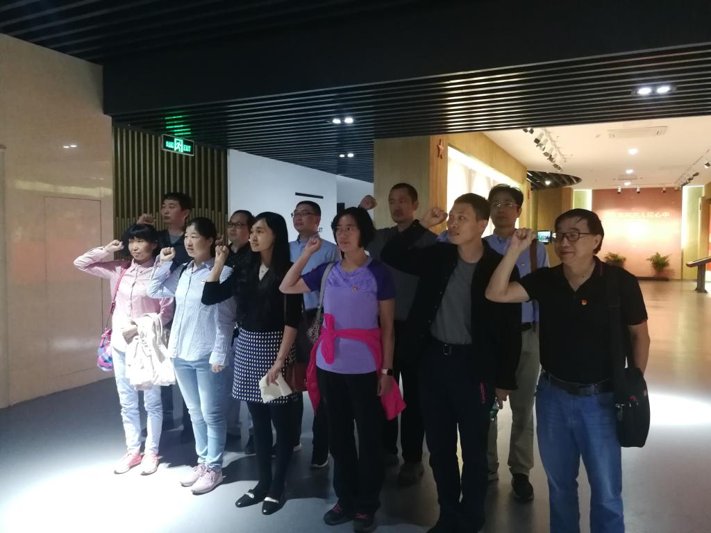 全体党员怀着崇敬的心情,参观了新四军苏南抗日斗争历史陈列馆、新四军将帅馆、新四军文化建设史实馆等展区。沿着新四军全体将士浴血奋战的革命征程,通过一件件珍贵的文物和相关图文影音的讲解,重温了那段跌宕起伏的光荣历史和艰辛历程,让大家看到了先辈们舍小家,为大家的革命豪情,看到了当年“红色太华山,苏南小延安”在抗日战争和民族解放时期,在苏南这块红色热土上,革命先烈们为了中国人民的幸福和中华民族的复兴,抛头颅洒热血,铸就的英勇无畏的铁军精神。参观过程中,全体党员同志高举右拳,在鲜红的党旗面前再一次重温了入党誓词,和当初入党时宣誓的自己进行了一次对话,引发了每位党员对自己当初入党时的初心和决心的思考。