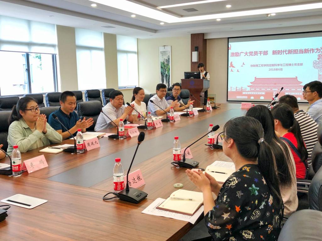 6月20日下午,物联网工程学院控制科学与工程博士研究生党支部在学院B222会议室召开了以“进一步解放思想,激励新时代新担当新作为”为主题的组织生活会。江南大学校长陈坚,物联网工程学院党委书记程捷音、副书记耿向阳参加了本次组织生活会。