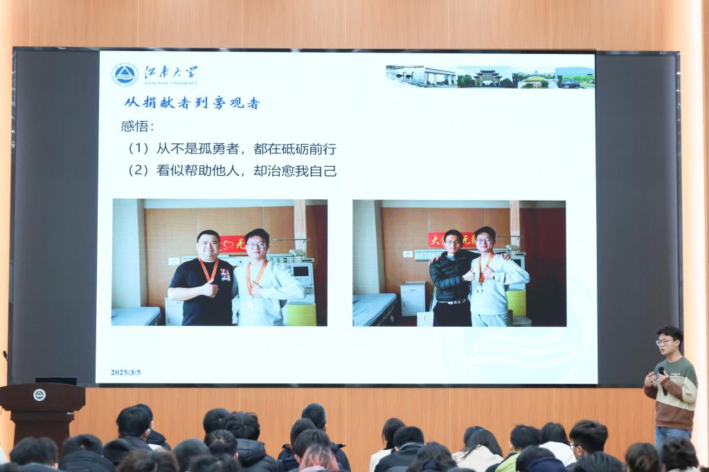 控制科学与工程22级博士陈威以《一通意想不到的电话》为主题,分享了捐献造血干细胞的非凡经历。一次偶然献血让他加入骨髓捐献队伍,当与患者配型成功,他毫不犹豫决定捐献,并默默完成各项准备工作。他的义举诠释了“大爱无疆”,为患者带来生的希望,也激励更多人加入爱心传递行列。