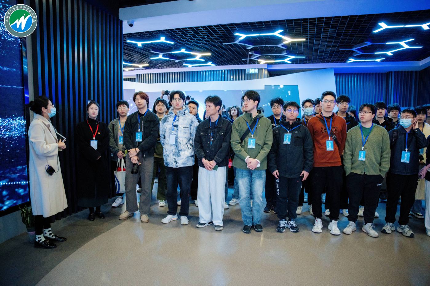 本次活动由无锡市人力资源和社会保障局主办、无锡市人才服务中心承办,旨在通过“理论认知+实践感知”双轨模式,深入城市科创地标与产业前沿,帮助大学生建立对无锡重点产业的立体化认知。活动首站走进国家超级计算无锡中心,同学们实地了解“神威·太湖之光”超级计算机的技术突破与应用成果。该设备以每秒12.5亿亿次峰值计算能力,支撑气象预测、基因测序等国家级科研任务,彰显我国在算力领域的战略地位。从中同学们对于科学家精神有了更深刻的感悟,提升了科研报国的信心决心。
