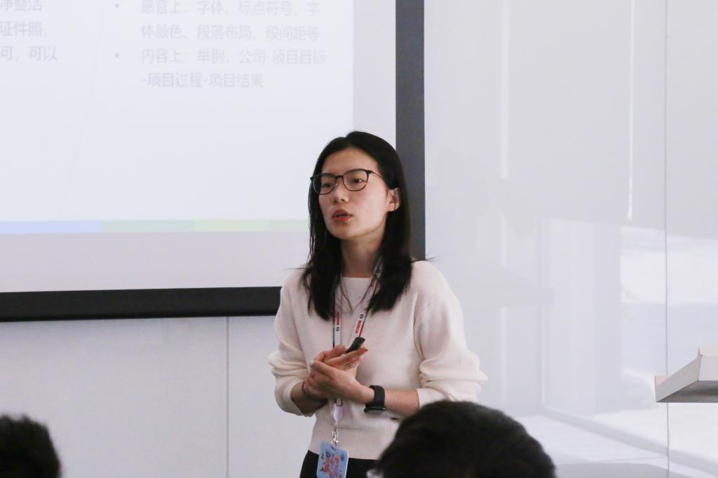 随后,王娜娜结合自身招聘经验为同学们带来一场“AIoT时代的职业成长密码”主题生涯规划课,不仅介绍了企业人事招聘过程中的考察核心,还从“求职前-求职中-求职后”三个时间维度给同学们提供了准备简历、面试等方面的建议,帮助其显著提升职业竞争力。课程尾声,人力资源团队围绕向学生发放的《博世中国创新与软件开发中心闯关秘籍》,就学生关心的实习实训项目、秋招规模要求等问题进行解答,最后带领师生一行参观了企业的办公环境。