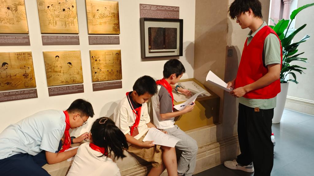 志愿讲解新苗培育:构建跨代际传承闭环。在常州三杰馆指导老师的专业培训下,实践团成员聚焦语音语调、肢体表达、史料延展等维度下苦功,按“熟文本、炼表达、析内涵、审细节”的流程通过考核,拿到了属于自己的讲解员“上岗证”。他们认真对待每一场讲解,用心回应每一名观众,这支身着红马甲的00后志愿讲解员队伍,已然成为常州三杰馆里一道明媚动人的风景线。同时,实践团成员深度参与常州三杰纪念馆“红领巾讲解员”的培训工作中,逐字逐句帮少先队员打磨讲稿,用情景剧形式还原历史场景,通过“大手牵小手”的方式,将红色基因的种子悄然种下。培训中,一名扎马尾的少先队员指着讲解词问道:“我们如今的幸福生活,是不是先烈爷爷们奋力守护的愿景?”这一追问,让团队成员深切体悟:传承并非单项的理念灌输,而是当少年对历史主动探索时,将“勇毅担当”“家国情怀”内化为价值认同的自觉行动。这份传承的厚重,既映照在少年澄澈的眼眸中,更镌刻在一代代人接过精神接力棒的担当里。
