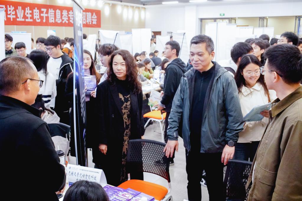 初冬蓄势扬帆起,蠡湖引航共筑梦。11月7日下午,江南大学2026届毕业生电子信息类专场校园招聘会在蠡湖校区北区大学生活动中心F105成功举办。本次招聘会由物联网工程学院、人工智能与计算机学院和集成电路学院联合举办,吸引了包括华为、小米、中国电子科技集团、长虹智能装备、村田电子、中天钢铁、苏南机场集团等66家知名企业、科研院所参与,涵盖物联网、自动控制、电气工程、人工智能、软件工程、集成电路等多个电子信息前沿领域,共提供优质岗位1800余个,吸引了近千名毕业生到场参与。