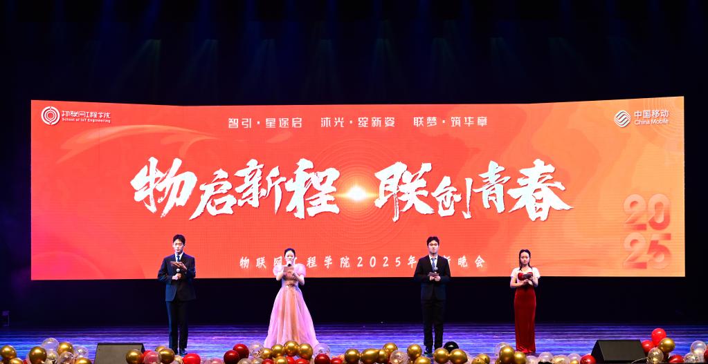 迎新夜,触万物,启新程。12月5日晚,物联网工程学院2025年"物启新程,联创青春"迎新晚会在文浩馆观众厅举行。物联网工程学院党委书记张华、党委副书记兼副院长吴妍、副院长陶洪峰、副院长王子赟、院长助理、各系部教师代表,全体辅导员、班主任和2025级本科与研究生新生共同参加本次活动。