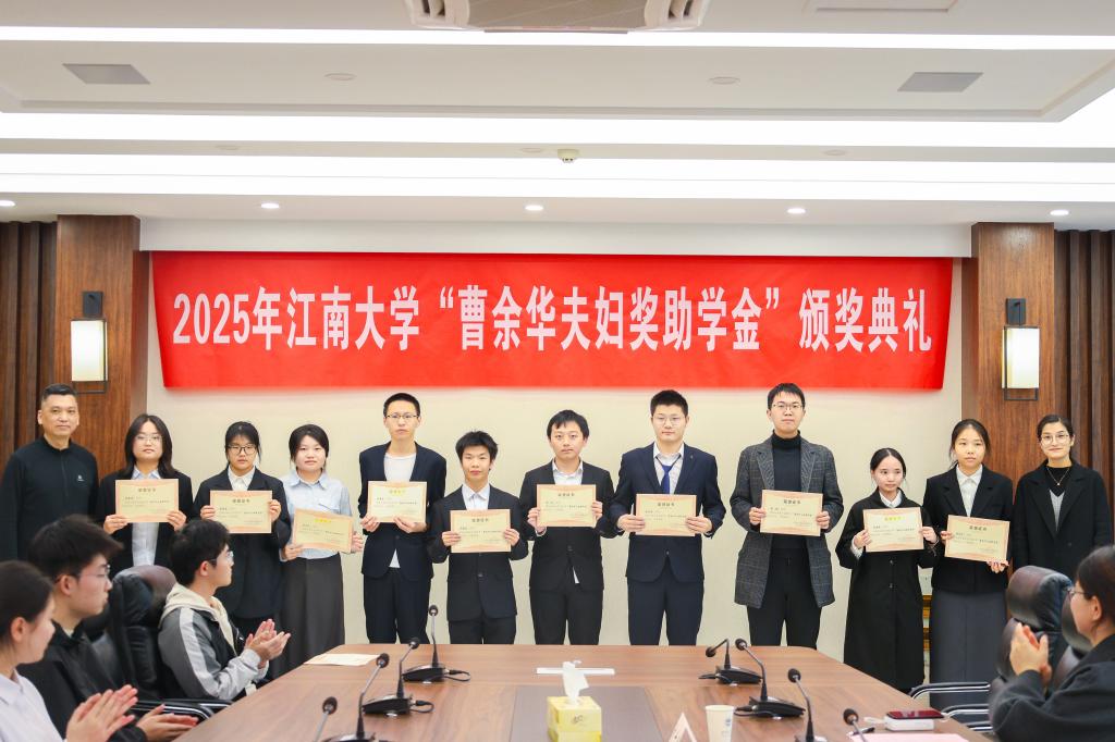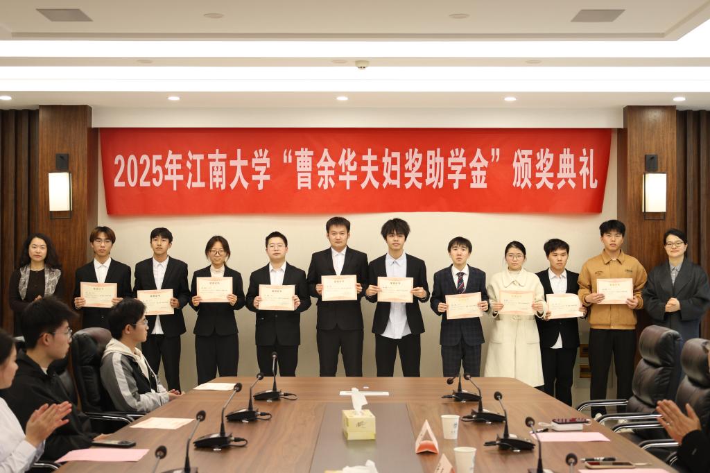 12月9日下午,江南大学2025年“曹余华夫妇奖助学金”颁奖仪式在物联网工程学院B222会议室举行。无锡贝斯特精机股份有限公司公司办副主任张春香,物联网工程学院党委书记张华、党委副书记兼副院长吴妍,机械工程学院党委副书记兼副院长刘升恒,以及全体获奖学生和相关学院学生代表共同参加了本次颁奖典礼。颁奖典礼由学院学工办主任兼分团委书记洪筱主持。