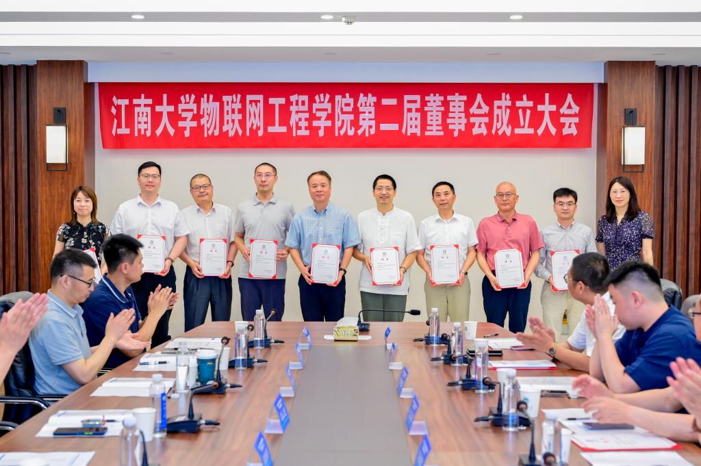 2023年6月30日,江南大学物联网工程学院第二届董事会成立大会在学院B222会议室隆重召开。江南大学党委常委、副校长倪松涛,社会合作与校友联络处处长周云龙,博创智能装备股份有限公司董事长朱康建等十九家企业代表,以及物联网工程学院党政班子成员出席会议。大会由物联网工程学院党委书记耿向阳主持。