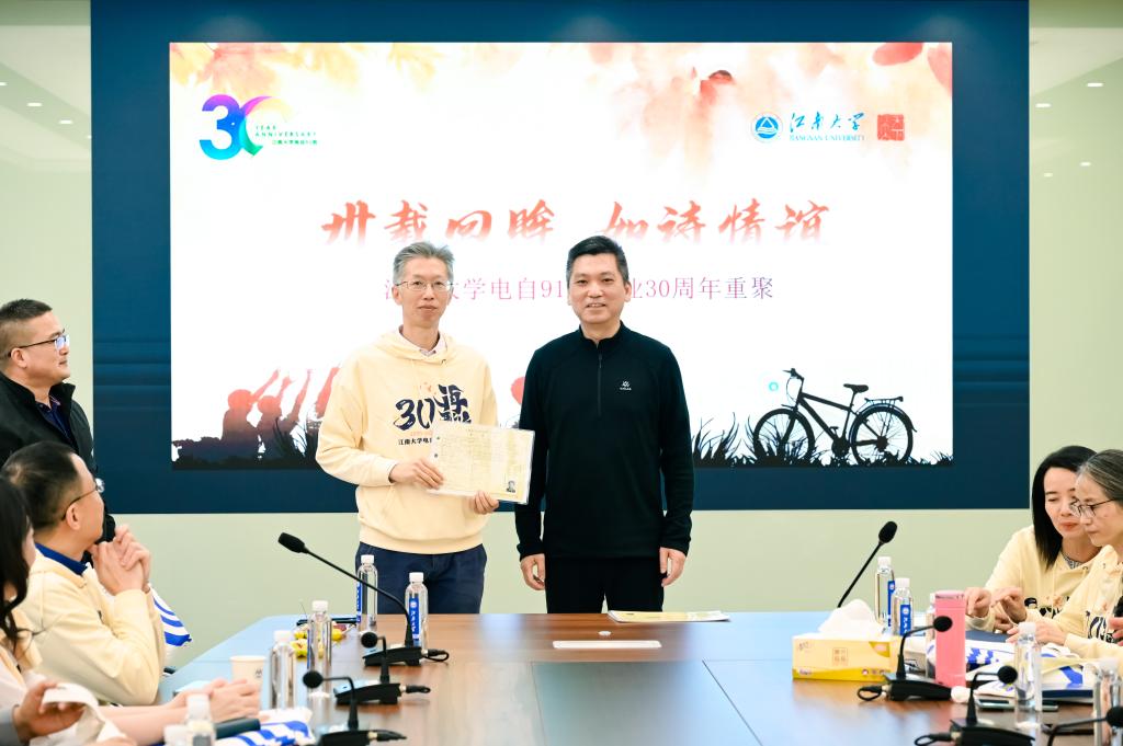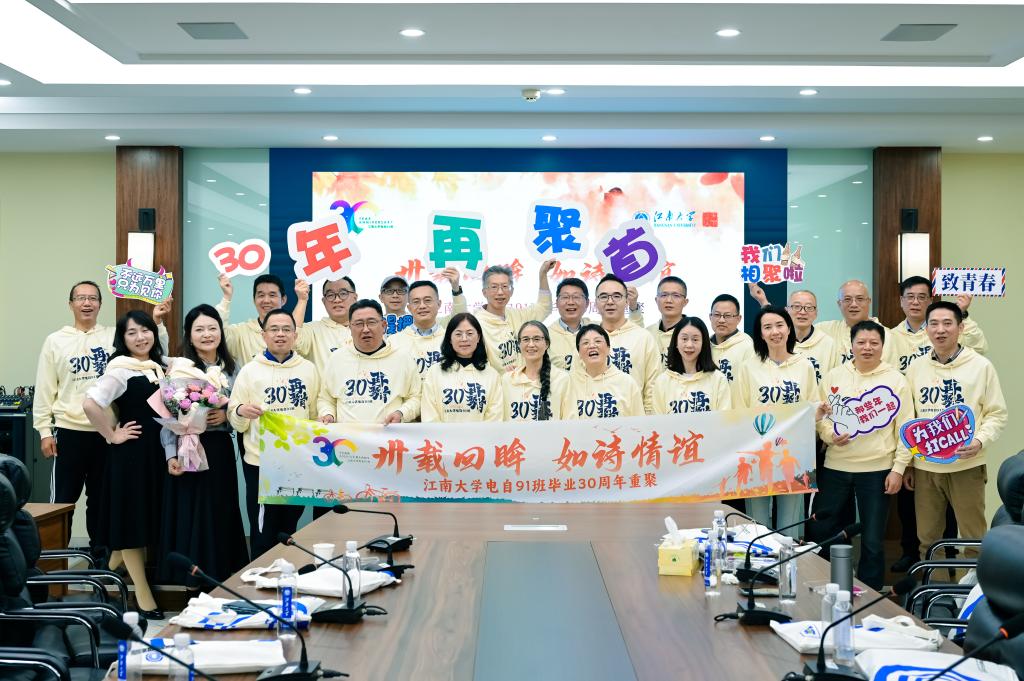 “卅载回眸 如诗情谊”。2025年11月7日,江南大学物联网工程学院喜迎全国各地的电气自动化911班校友返校!物联网工程学院党委书记张华,办公室主任付少平热情接待了校友并出席班级毕业30周年班会。