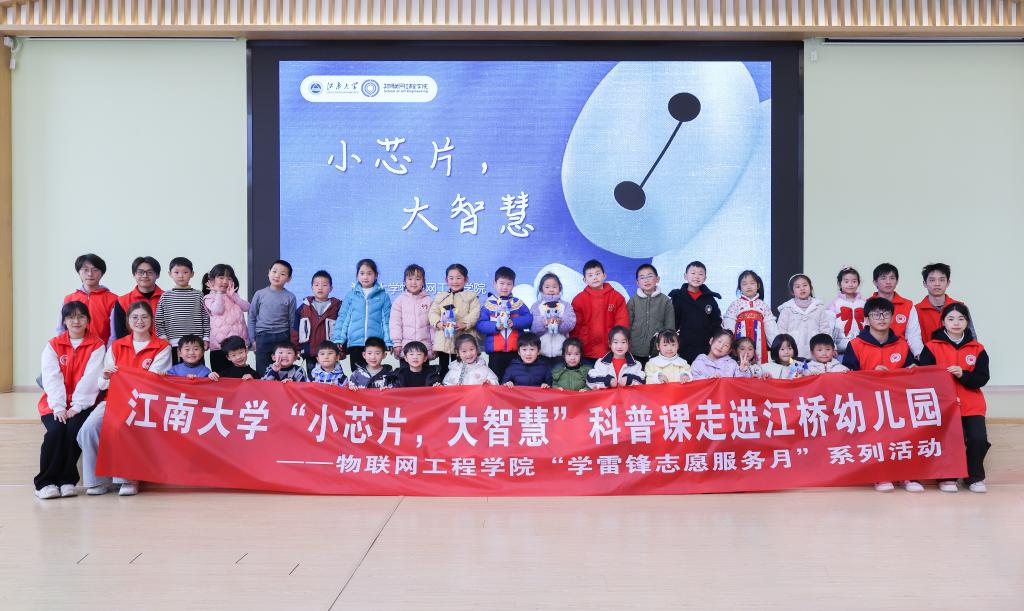 【交汇点新闻3月5日】 三月春风处处暖,雷锋精神代代传。3月5日,是第61个“学雷锋纪念日”,也是第25个“中国青年志愿者服务日”。为进一步弘扬雷锋精神,凝聚青春力量,江南大学物联网工程学院“雷锋”特称团支部走进无锡市新吴区江桥幼儿园,为孩子们带来一堂奇妙有趣的《小芯片,大智慧》公益科普课,在孩子们心中播下科技梦、强国梦的种子。