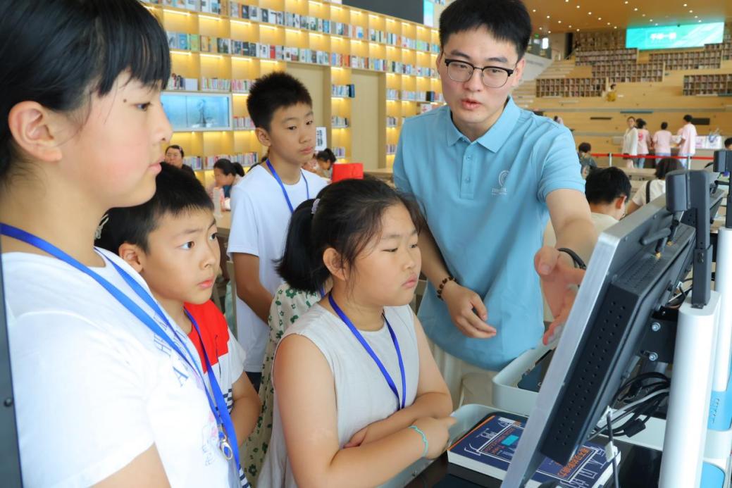 “智慧寻宝”环节将学习化为生动探险。大学生们设计了“图书借还小能手”“导览探秘小专家”双重任务:孩子们在图书馆扫描条码借阅书籍,在展厅用导览屏定位展品,在“地图寻宝”的紧张与“听讲解找答案”的专注中,动手能力与文化认知同步提升。一名孩子举着刚借到的《红岩》雀跃道:“原来扫码借书这么简单,还能找到这么多老故事!”童言童语间,传递的是对科技便捷的亲身体验和对本土历史文化的直观认知。